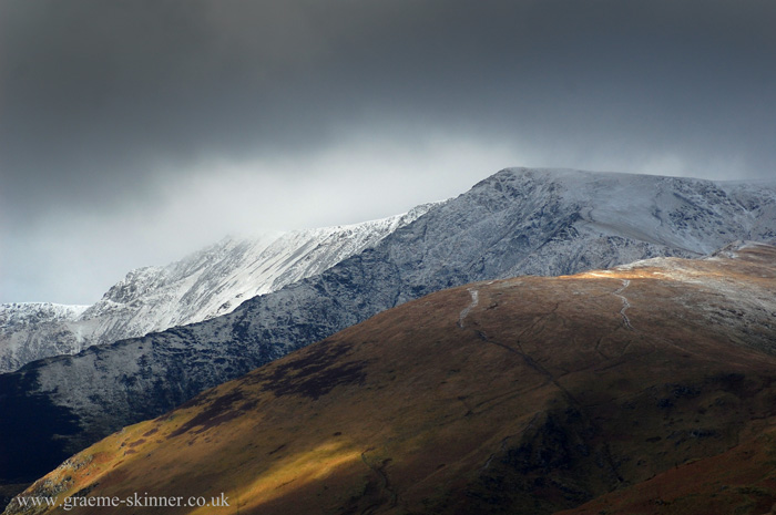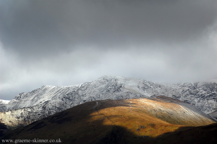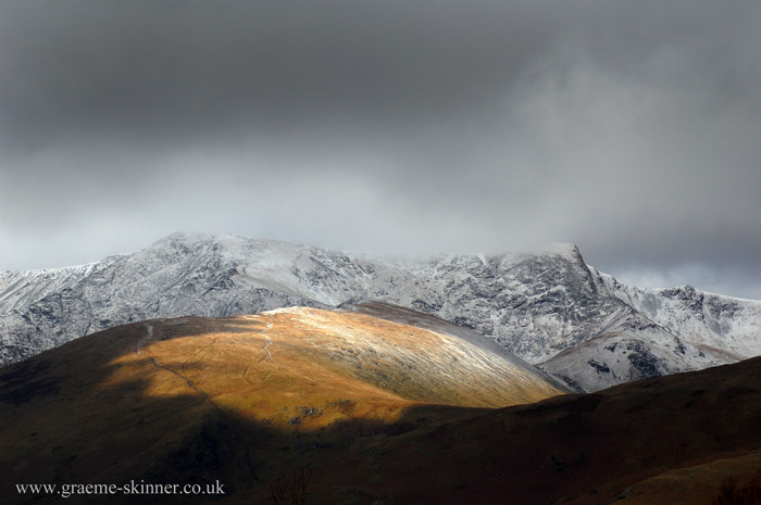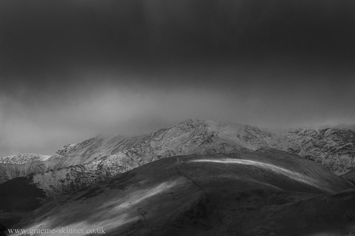 A couple of hours later and we were traveling West along the A66, the light did not look very exciting until we approached Blencathra and shafts of light broke through the cloud –