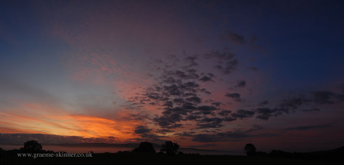 I went out this morning with the intention of taking a few dawn sky photographs, as I do from time to time, and managed a few shots and, I was happier with the detail in this small panoramic though than the close up shots I took –