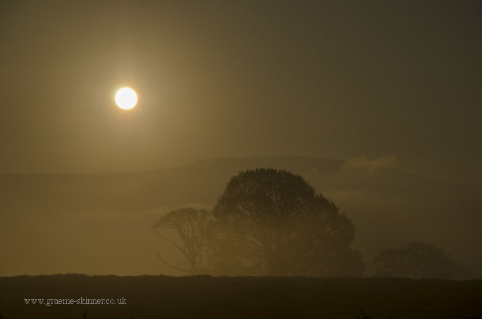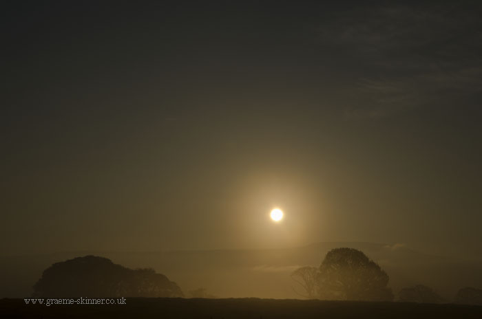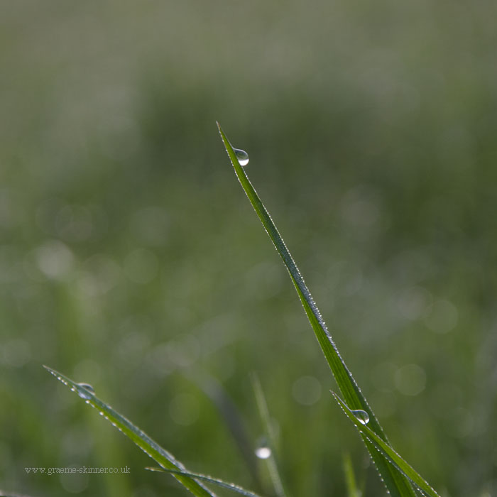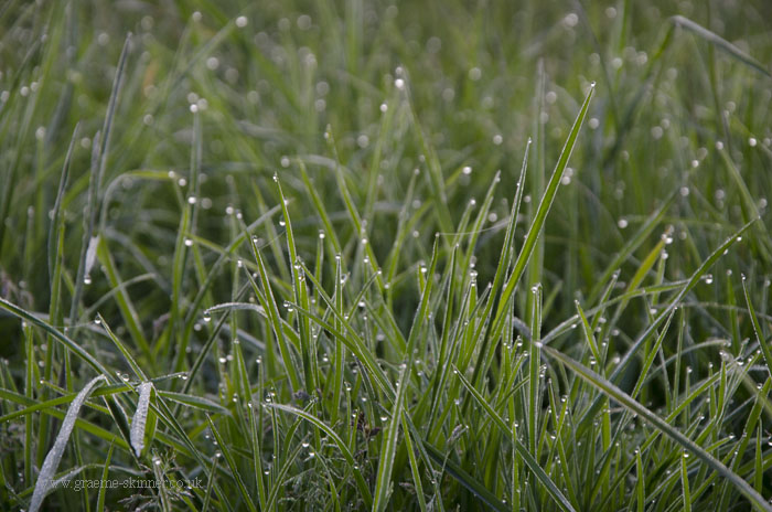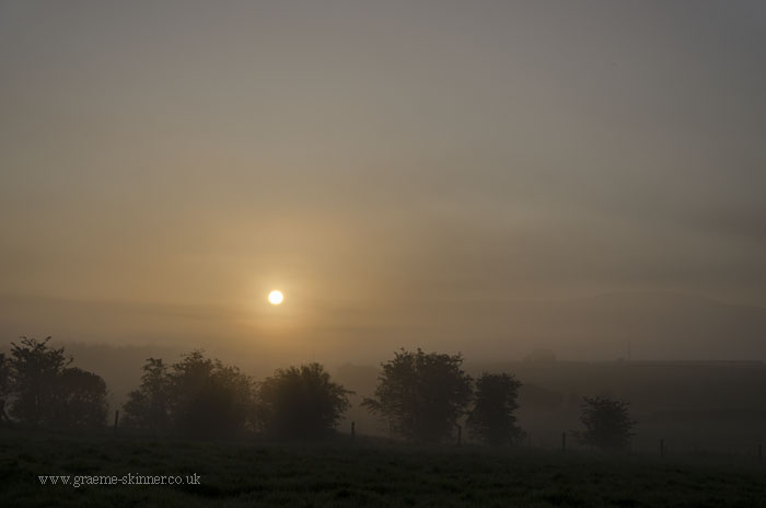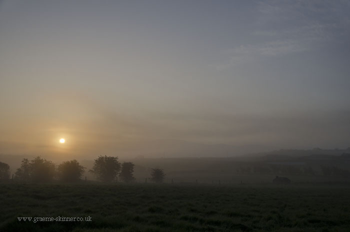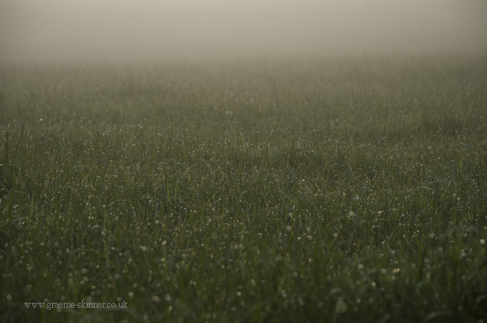 There was a fair amount of moisture in the air this morning, and what I had hoped would be wisps of mist in the valley turned out to be thick fog in places. Still after a few false starts (stopping the car as the view looked promising only to discover it wasn’t worth the effort ;-)) I managed a couple of misty sunrise images and some dew covered grass shots.