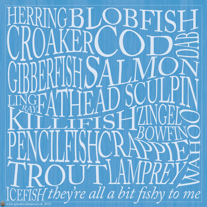 I was supposed to be sketching fish for this months theme over on John Howe‘s website, but I found looking at all the fish reference pictures unsettling. So I decided to do something in type to start me off.